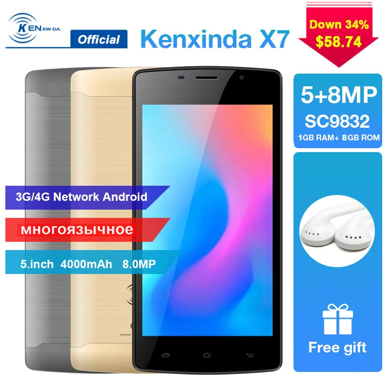 Buy Online In Stock Kenxinda X7 Smartphone 5.0inch Andriod7.0 1GB RAM 8GB ROM Quad Core 5MP+8MP Camera 4000mAh GPS 4G Unlock Mobile Phone For Sale at AliExpress